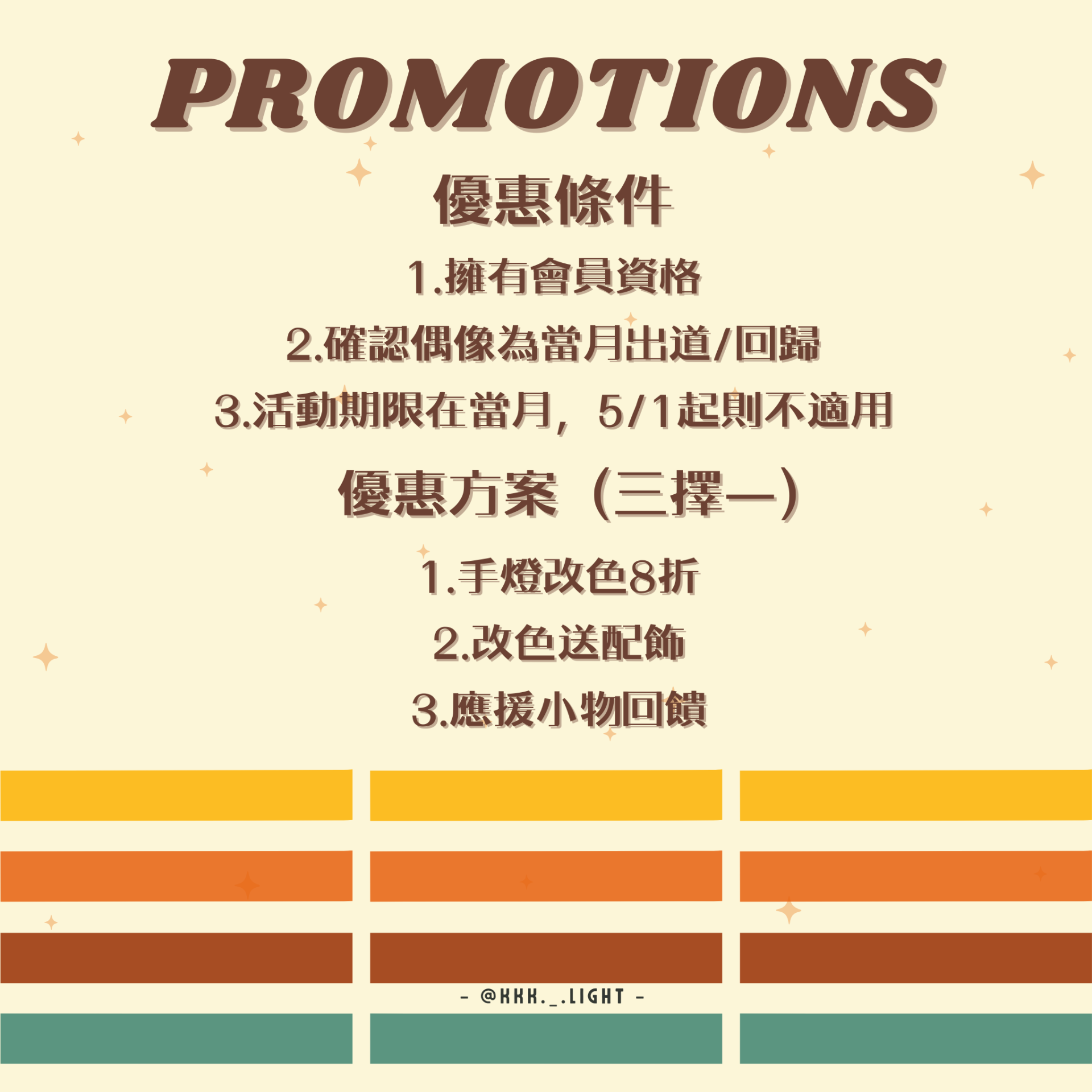 成為會員後,不只有會員的固定回饋(例如:免運/贈送應援小物/優先接取訂單),也能享有不定期偶像回歸/出道/演唱會優惠活動